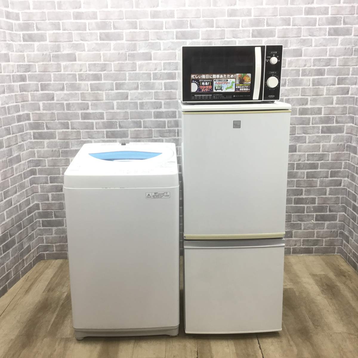 他の画像を見る 家電3点セット 冷蔵庫 アクア 126L 洗濯機 アクア 6.0kg 電子レンジ マクスゼン 50hz専用 Bランク 佐川急便 家電セット 3点セット(冷蔵庫・洗濯機・レンジ) 商品ID:191000035000 販売価格 ¥ 43,800 税込 カートに入れる お気に入りに登録する
