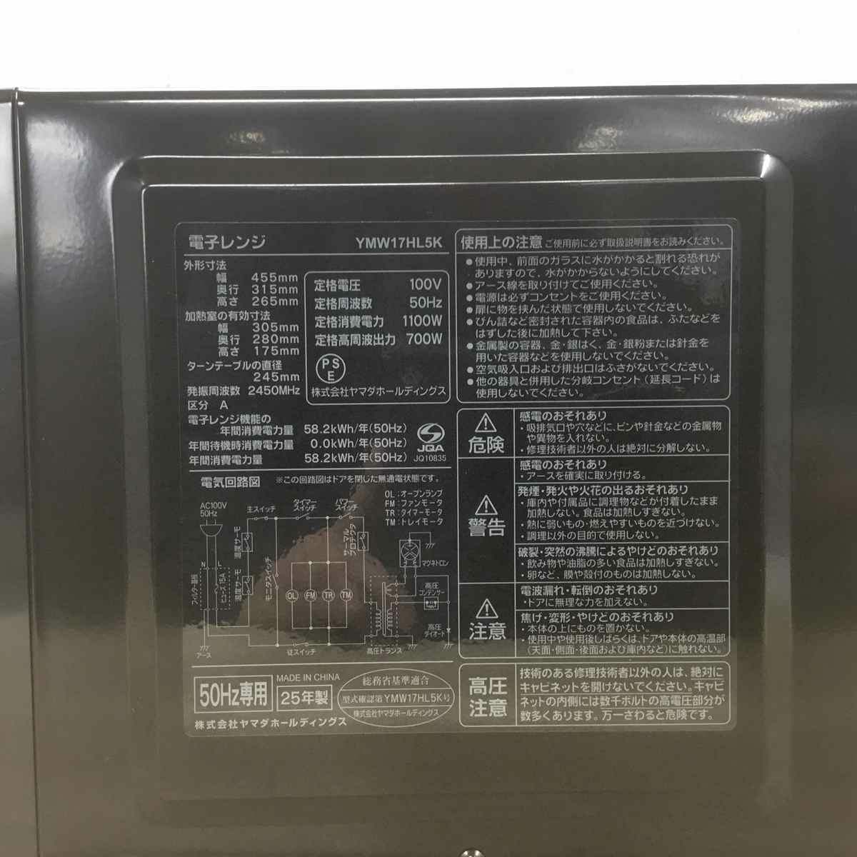 他の画像を見る ヤマダ電機 電子レンジ 700W 50hz 東日本専用 ブラック YMW-17HL5(K) 2025年製 Bランク 佐川急便 商品ID:411000242000 販売価格 ¥ 9,800 税込 カートに入れる お気に入りに登録する