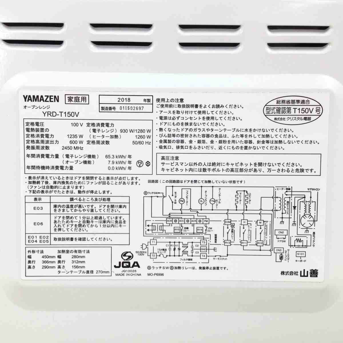 他の画像を見る ヤマゼン オーブンレンジ 600W 15L ホワイト YRD-T150V 2018年製 Bランク 佐川急便 商品ID:412000051000 販売価格 ¥ 8,580 税込 カートに入れる お気に入りに登録する